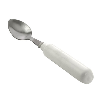 Cutlery with a grip designed to give independence at mealtime. These utensils allow maximum user control with minimum effort. Useful in both institutions and at home. The comfort grip has a soft vinyl coating with finger indentations for a secure grip. Suited for persons with poor grasp with a 7/8″ (22mm) diameter grip. Light weight, 85 grams (3oz) each. Dishwasher Safe. Latex Free.
