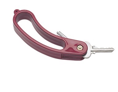 Provides several gripping positions and excellent leverage. It can be used with fingers inserted through hollow center or around outside. It has a loop for wrist strap, key chain, key ring or to hang on hook.